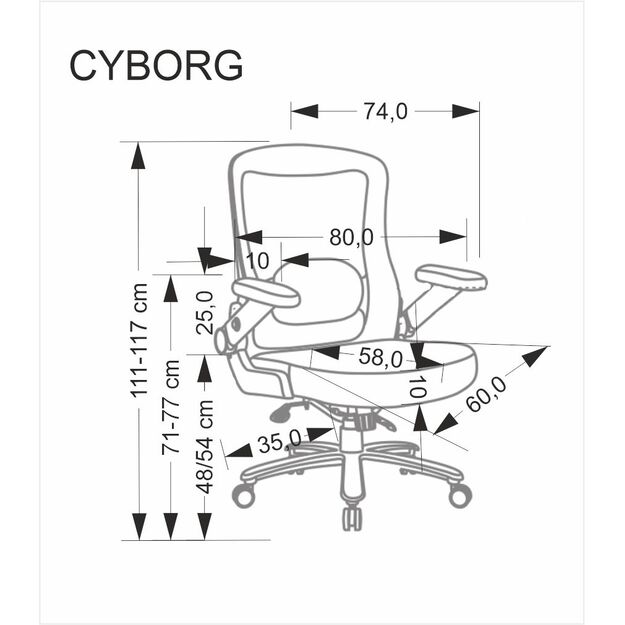 dimensions: 80/74/111-117/48-54 cm, MULTIBLOCK function / adjustable armrests / adjustable lumbar support, cloth / mesh, color: black